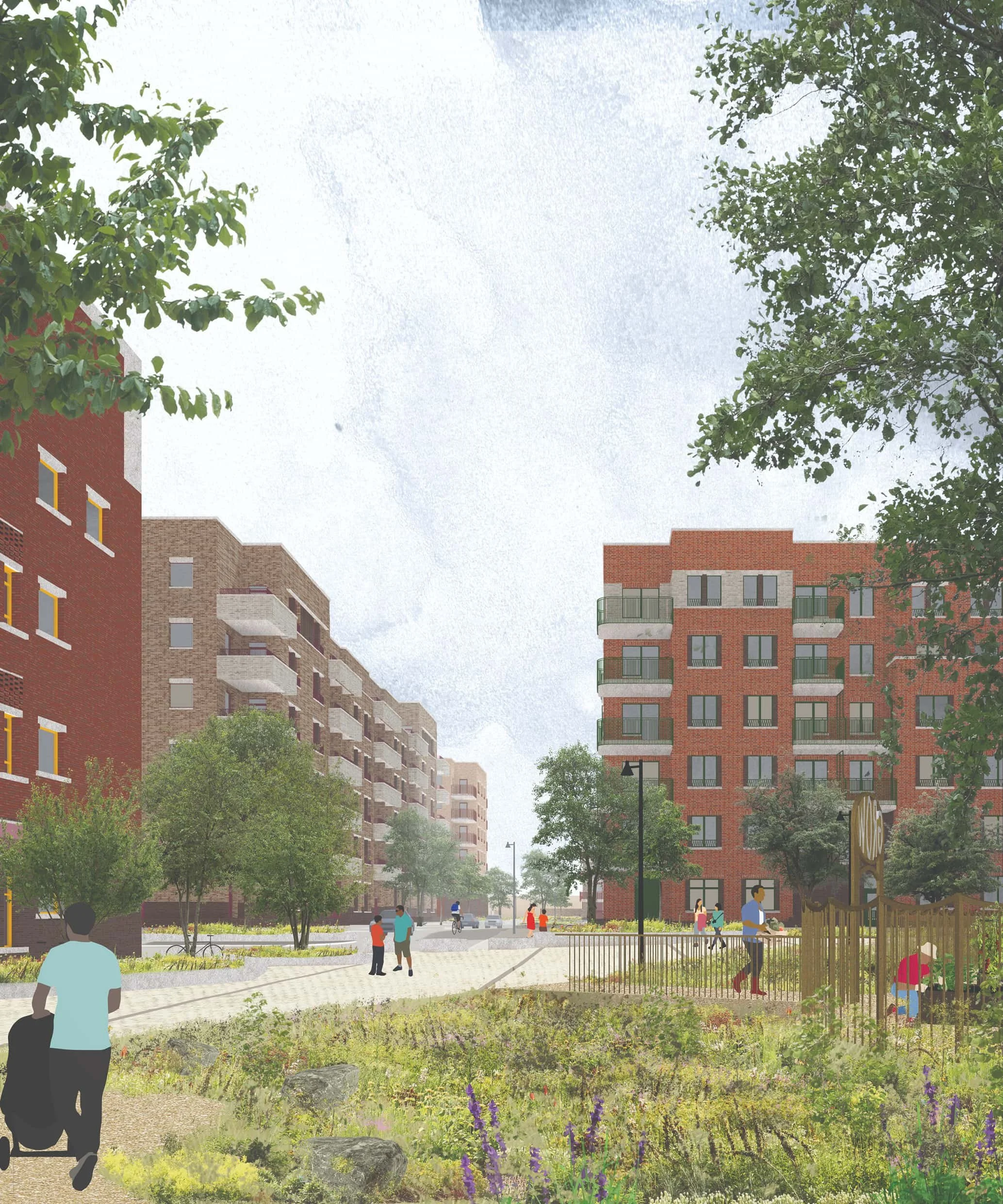 We worked with Karakusevic Carson Architects and Adams & Sutherland to develop proposals for the streets, places and spaces between the buildings and refine improvements to the park.
