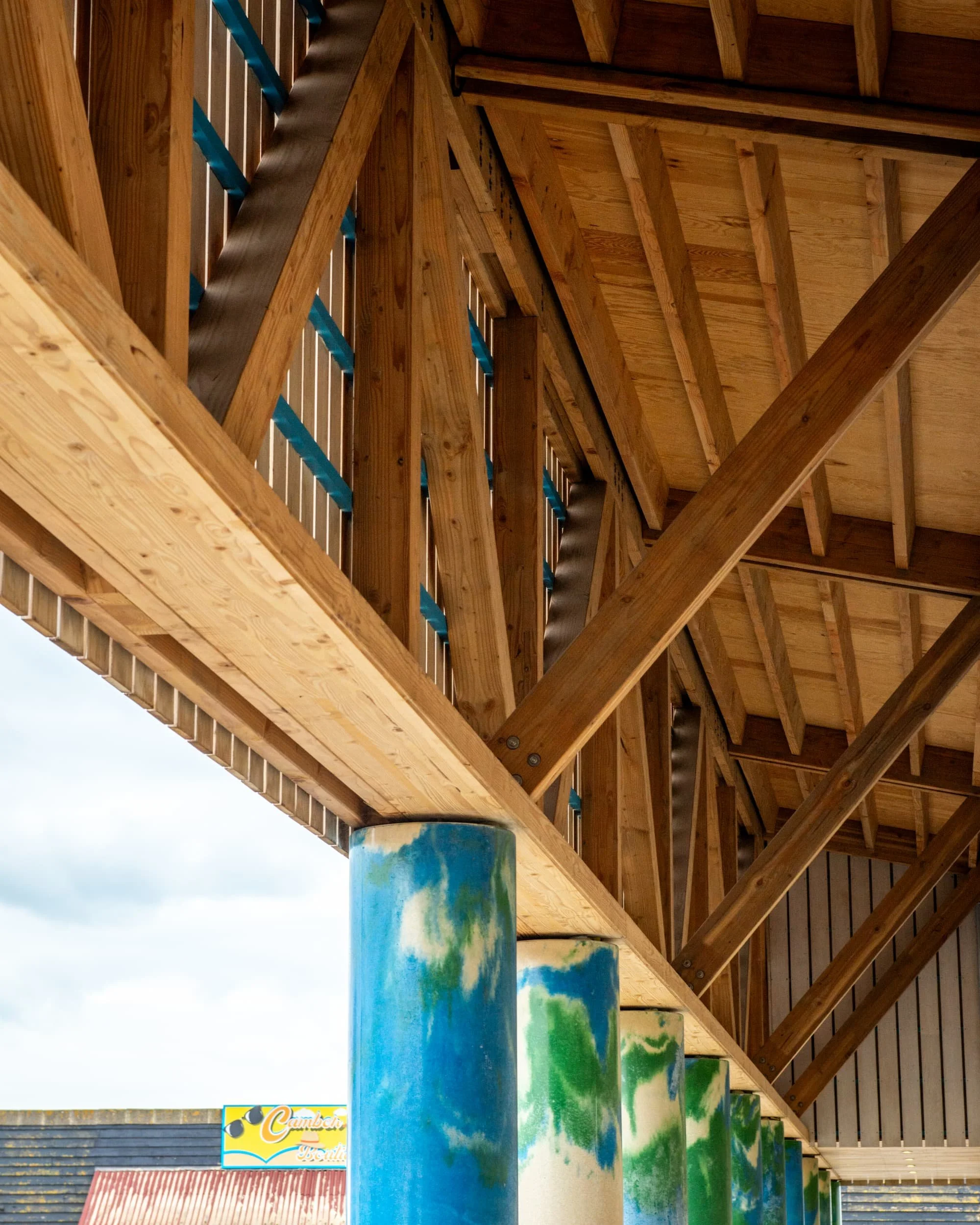 The project provided an excellent opportunity to prioritise environmental performance, while being sensitive to the challenging coastal conditions of the site. We focused on developing a lean and sustainable timber structure that is capable of withstanding harsh environmental conditions, with strong winds and constant exposure to salt spray and sand. We were able to achieve a fully timber solution, including wood fibre insulation, meaning the project achieved an A+ ‘SCORS’ rating from the IStructE. This recognises the structure’s extremely low embodied carbon, and is one of the first such ratings to be awarded for a public sector building in the UK.